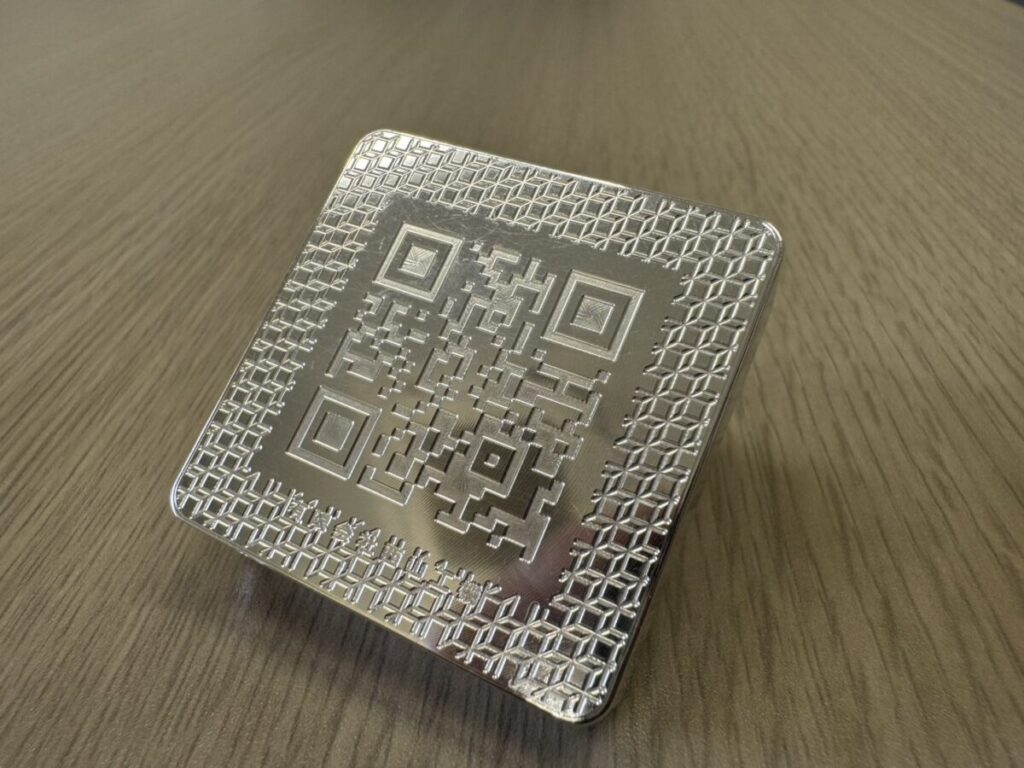 富士山の形も、背面のQRコードもすべてマシニングセンタで加工しました。