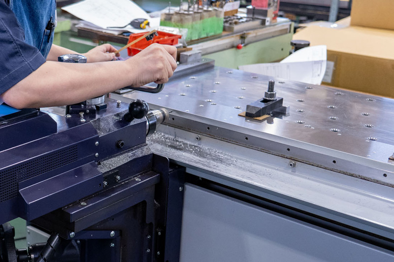 私が主に加工しているのはアルミの製品なので材料自体は比較的軽い部類なんですが、大きい製品になってくると材料も重いし使うものも重くなってくるので力が必要な部分はちょっと大変ですね。