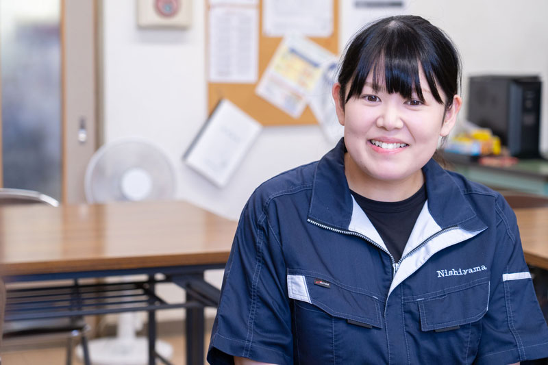 西山工機では未経験で入社した女性の先輩がいらしたのので、「女性でもできるんだ!」とチャレンジすることを決めました。